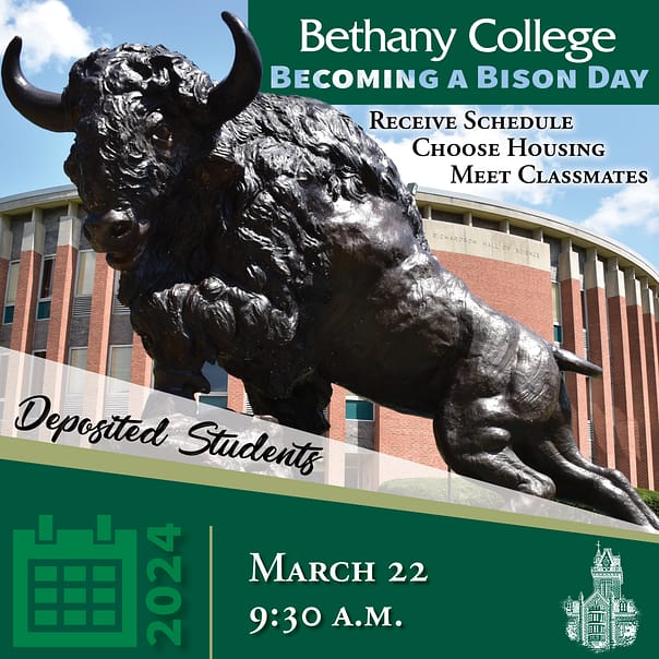 Get ready to embark on an unforgettable journey at Bethany College! For those whoāve already taken the exciting step of depositing for the upcoming academic year, mark your calendars and join us from 9:30 a.m. to 1 p.m. on March 22. This is your opportunity to become a part of the Bison family, and trust us ā you wonāt want to miss it!
