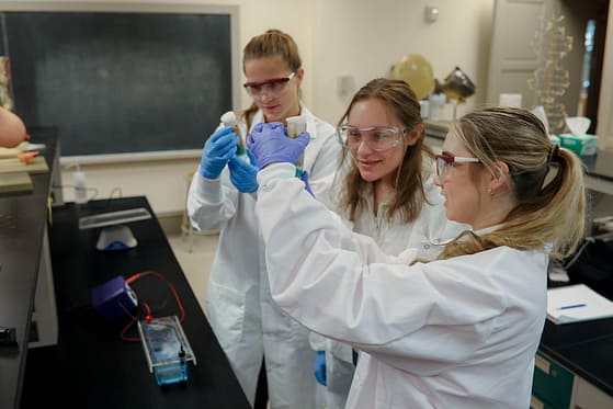 Students are encouraged to apply for summer internships and/or field experience, and many chemistry majors take advantage of these opportunities. Graduates of the program acquire the flexible skills required to enter many different fields of research and service, including industrial chemistry, and state and federal agencies. Many graduates continue their education in medical, dental, veterinary, and pharmacy schools. Graduate school placement, often with full fellowships, is also typical for chemistry graduates.